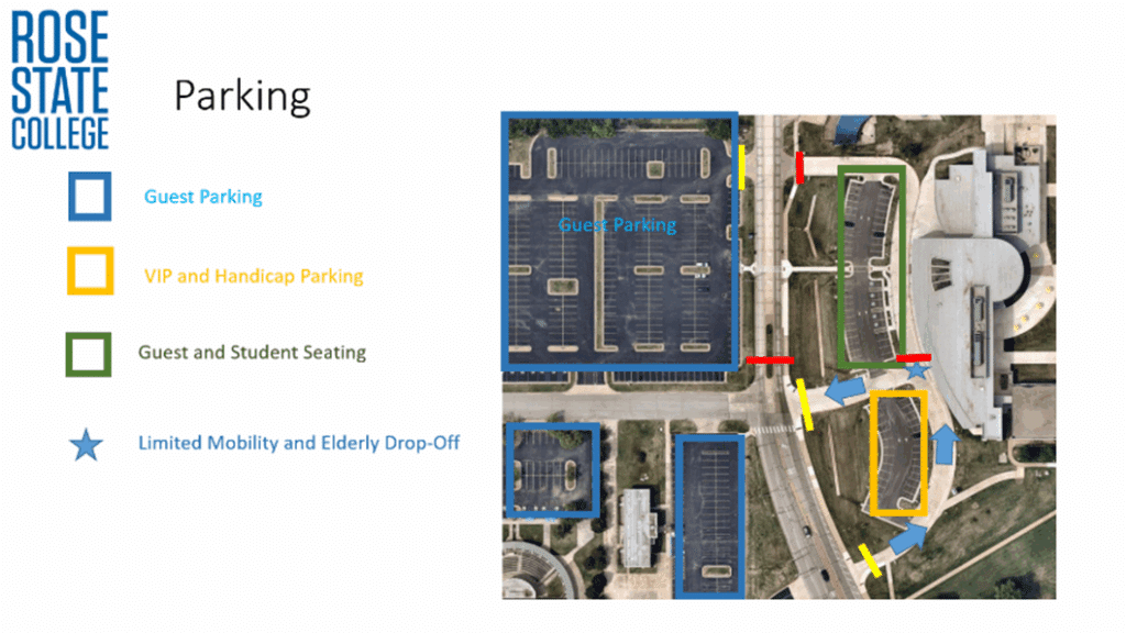 - Inclement Weather: In case of possible inclement weather, a decision will be made on Thursday, May 8, to move the ceremonies inside the Rose State College Performing Arts Center.